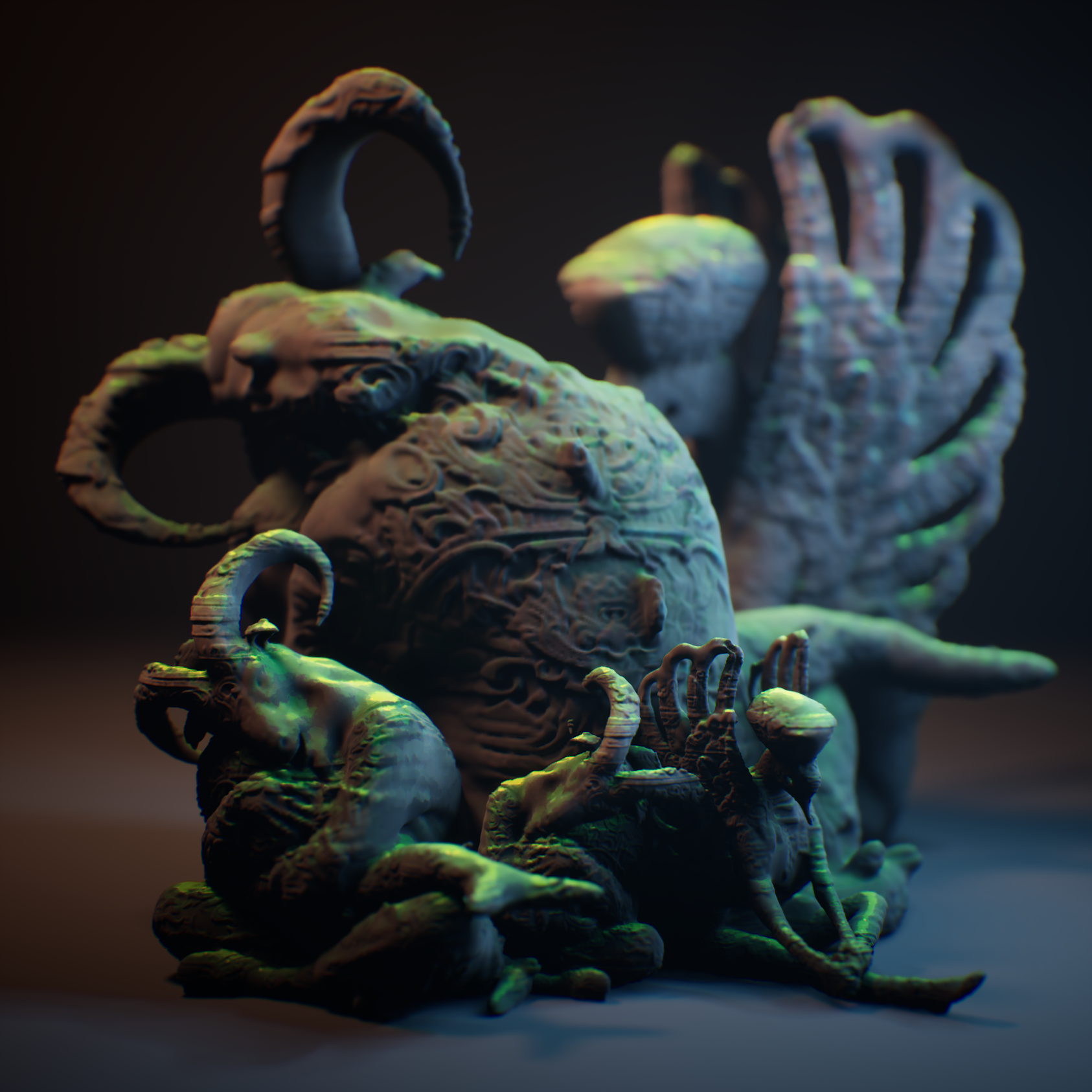 B1-B4: Different scales of brushes with varying opacities to blend everything together more effectively.