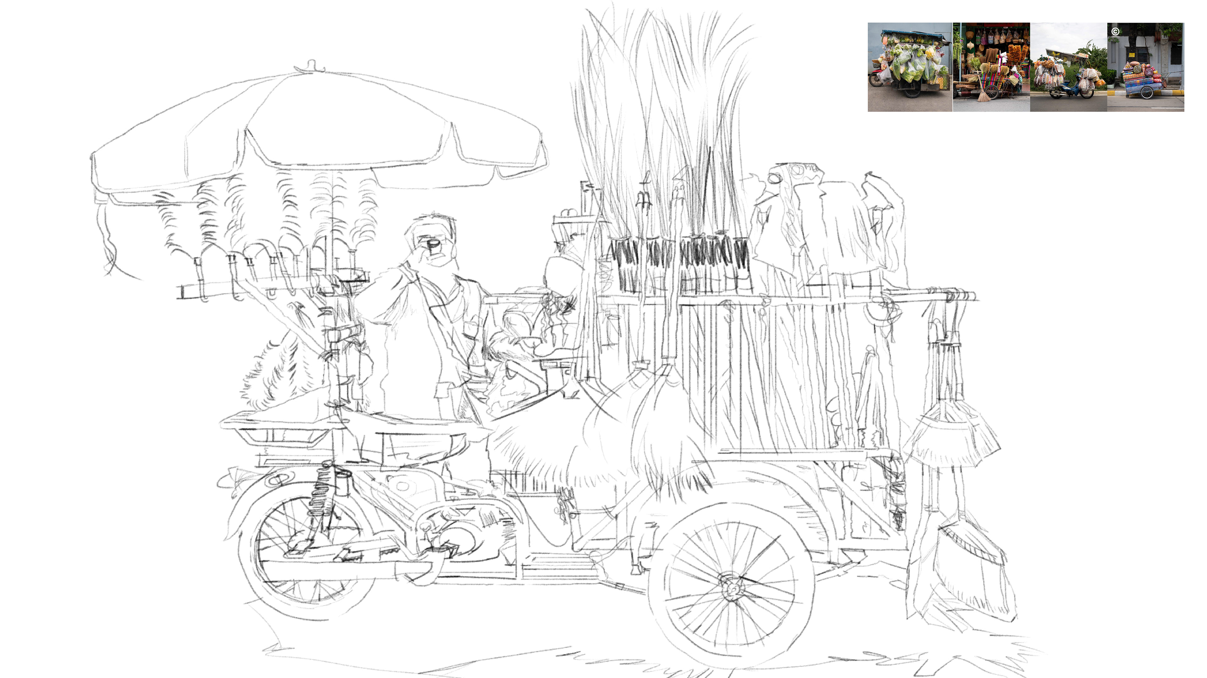 Inspired by traditional Thai street vendors, integrates advanced technology that transforms smog into ink. This innovative cart is equipped with a device that condenses air pollution and converts it into usable ink, merging traditional commerce with futuristic environmental technology.